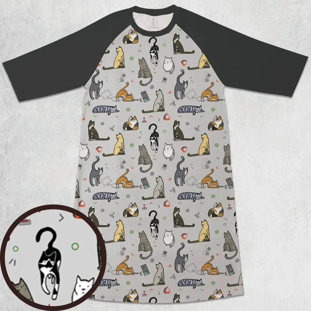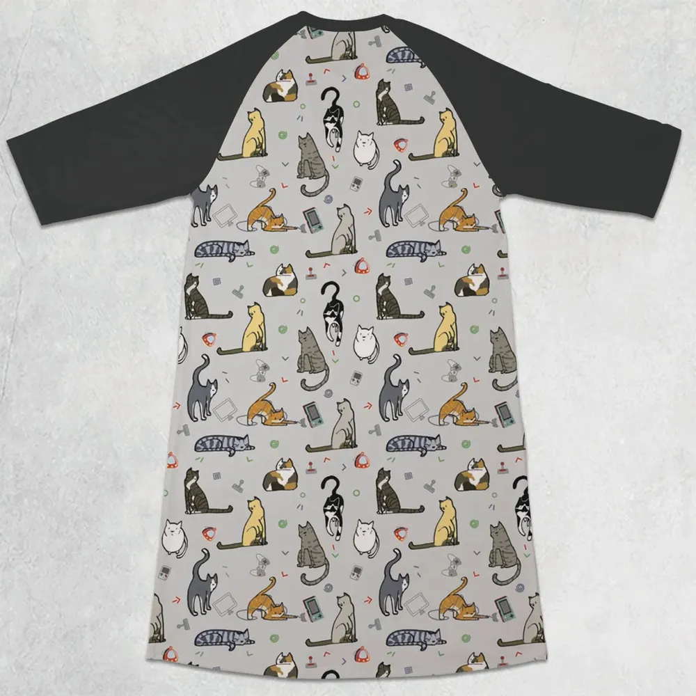 3. Cat the Gamer Pattern 3/4 Sleeve Raglan Dress