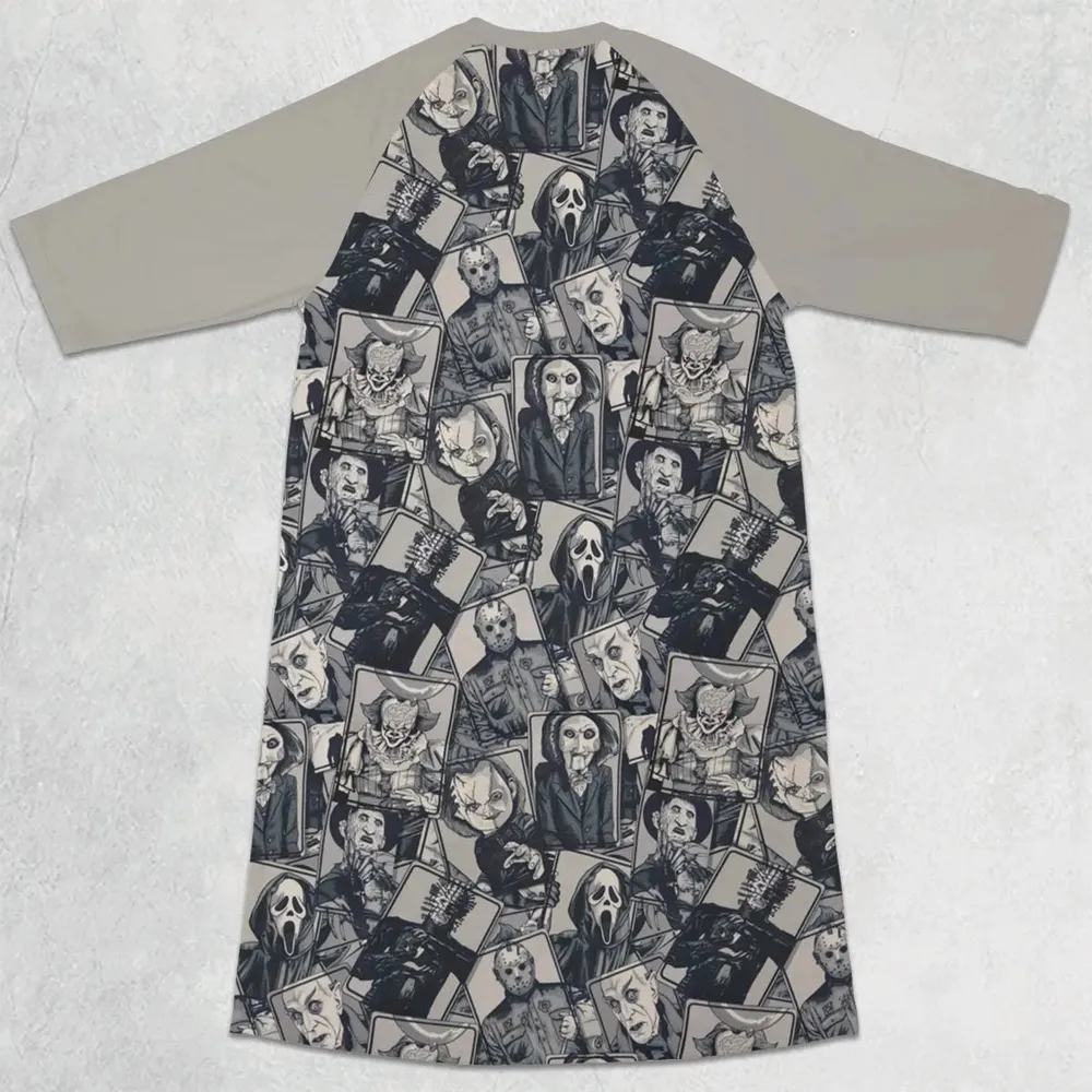 Halloween Horror Villains 3/4 Sleeve Raglan Dress