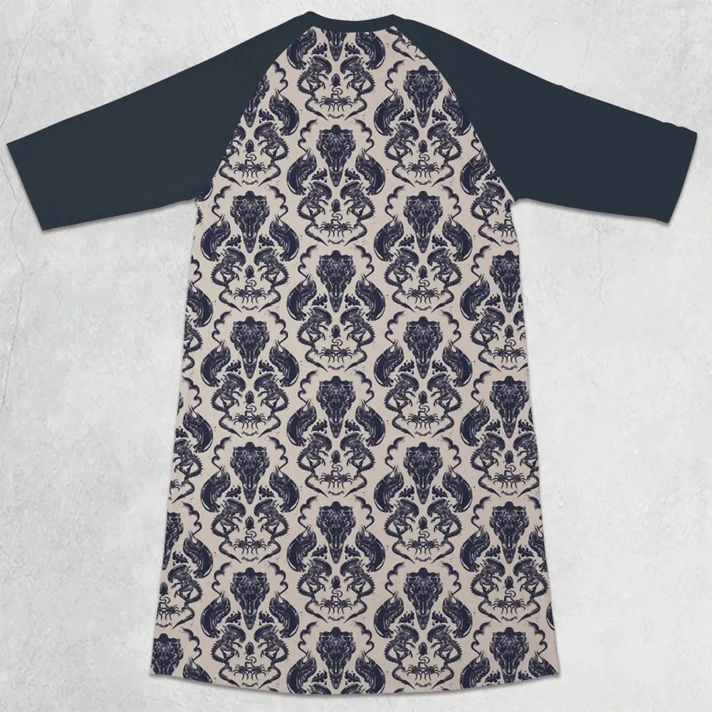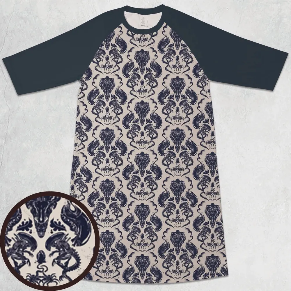 Alien Xenomorph Pattern 3/4 Sleeve Raglan Dress