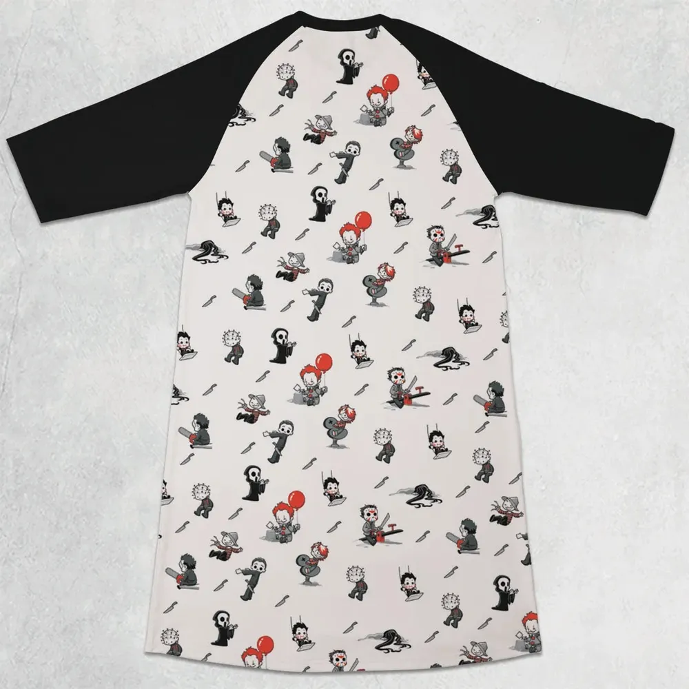 Baby Horror Characters Pattern 3/4 Sleeve Raglan Dress