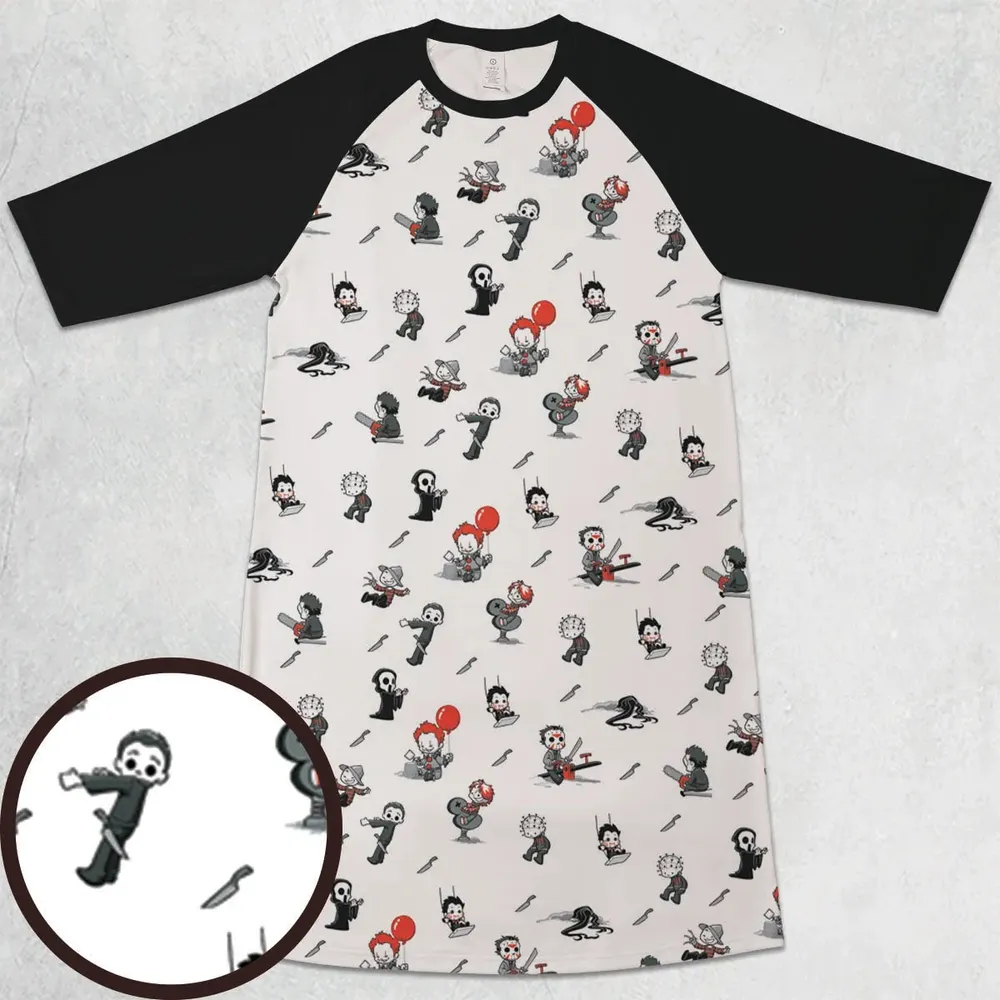 Baby Horror Characters Pattern 3/4 Sleeve Raglan Dress - 1
