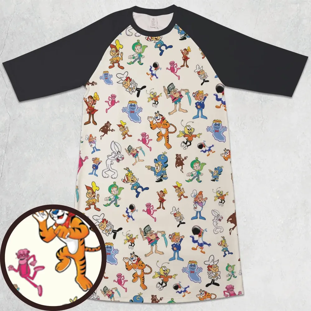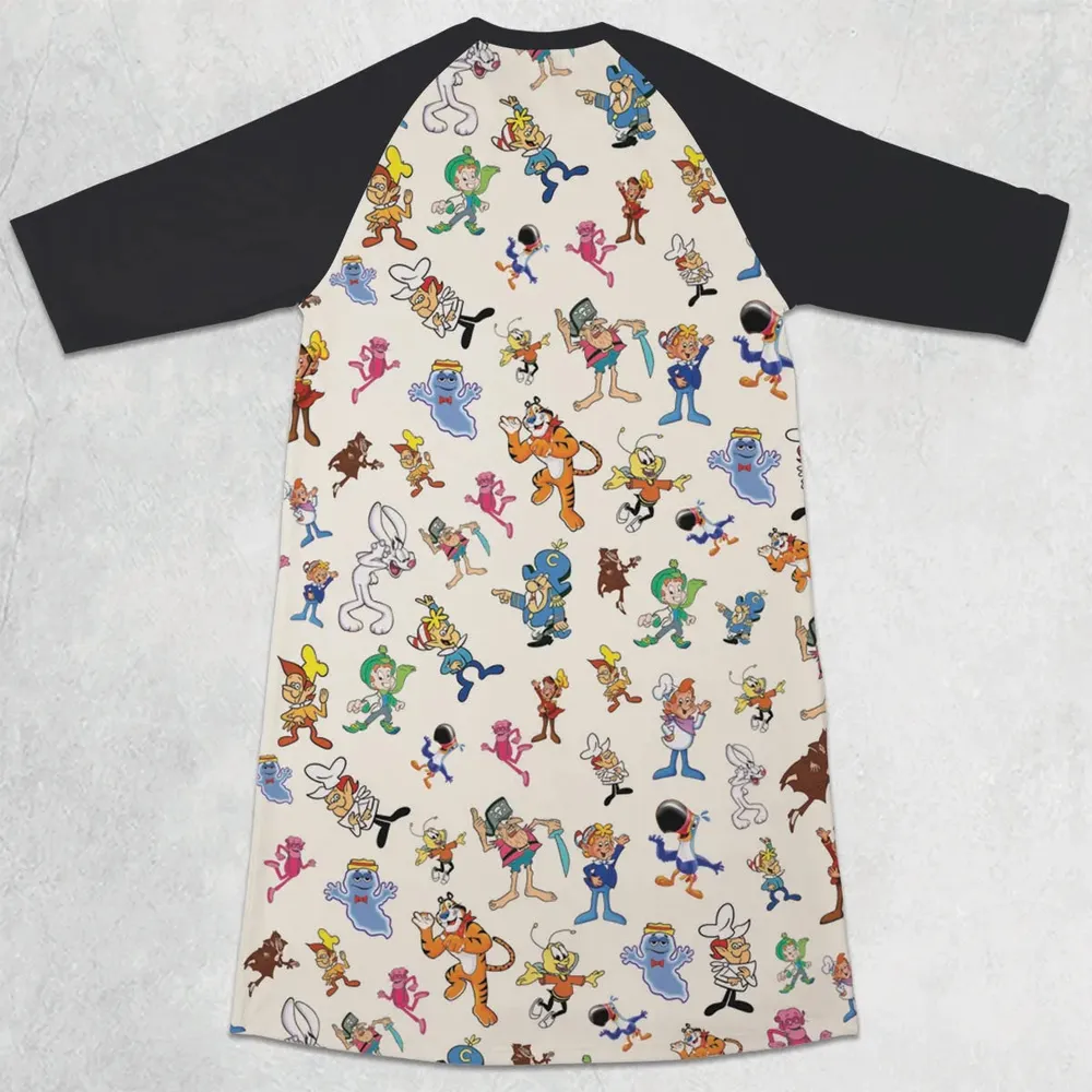 80s 90s Commercial Mascot Cereal 3/4 Sleeve Raglan Dress