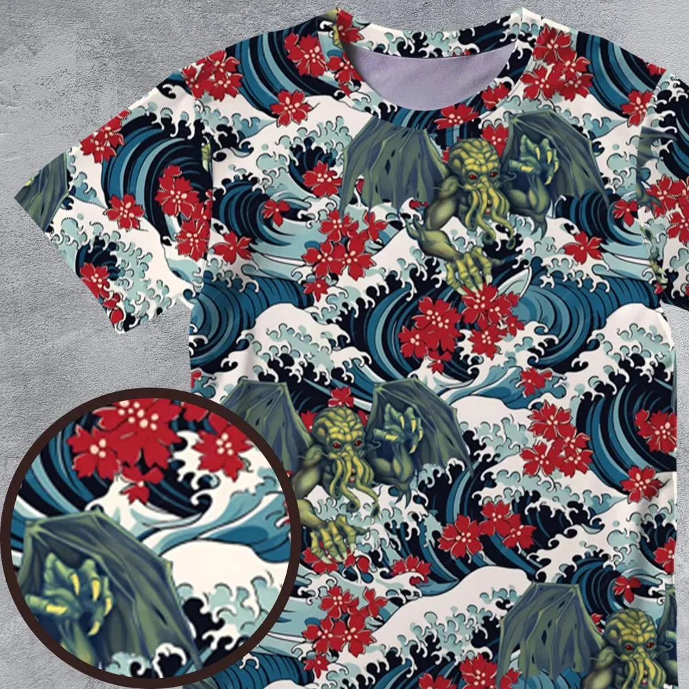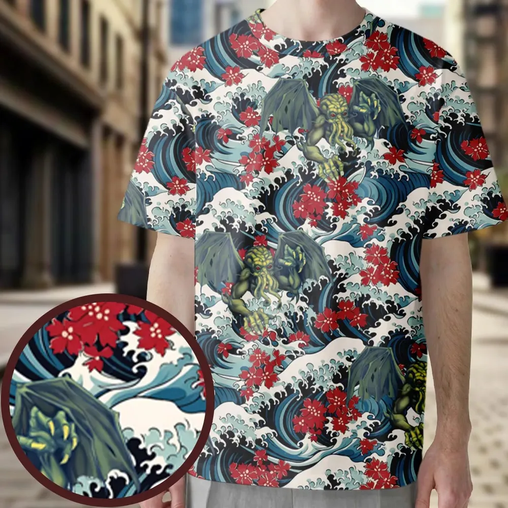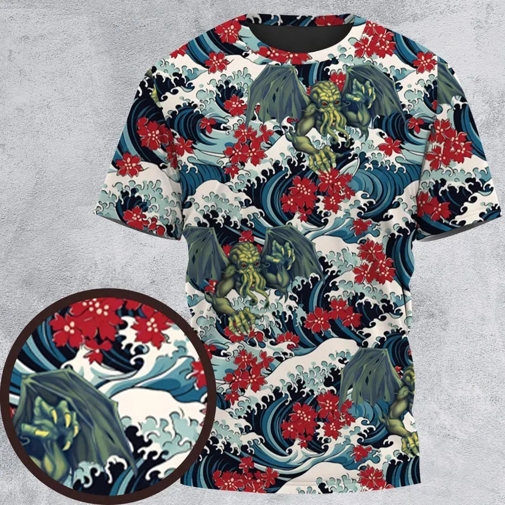 3. Great Waves Cthulhu All-Over Print Unisex T-Shirt