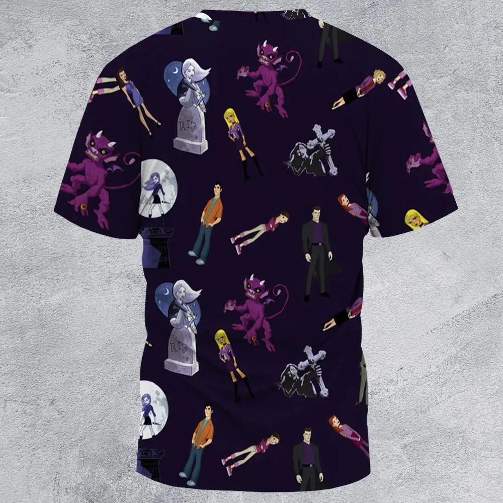 3. Buffy: The Animated Series Characters All-Over Print Unisex T-Shirt
