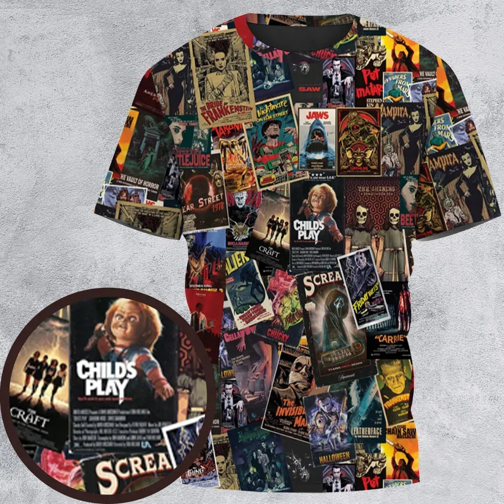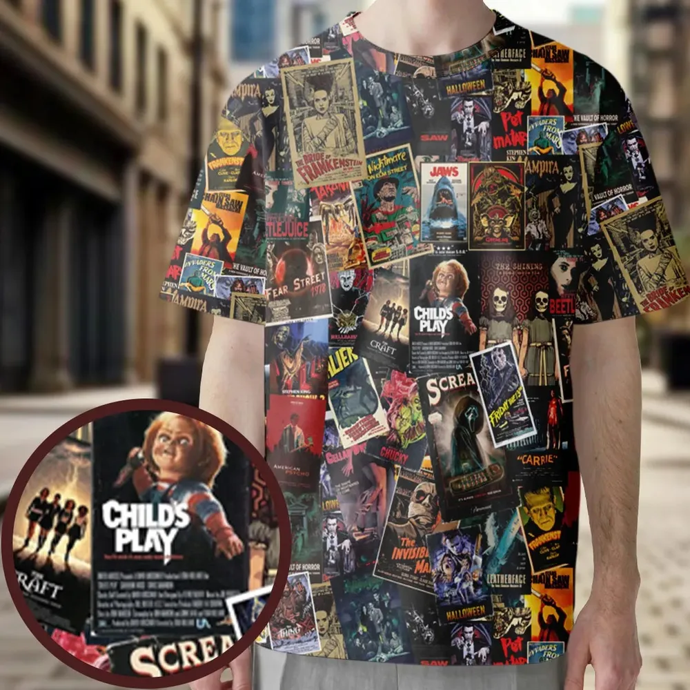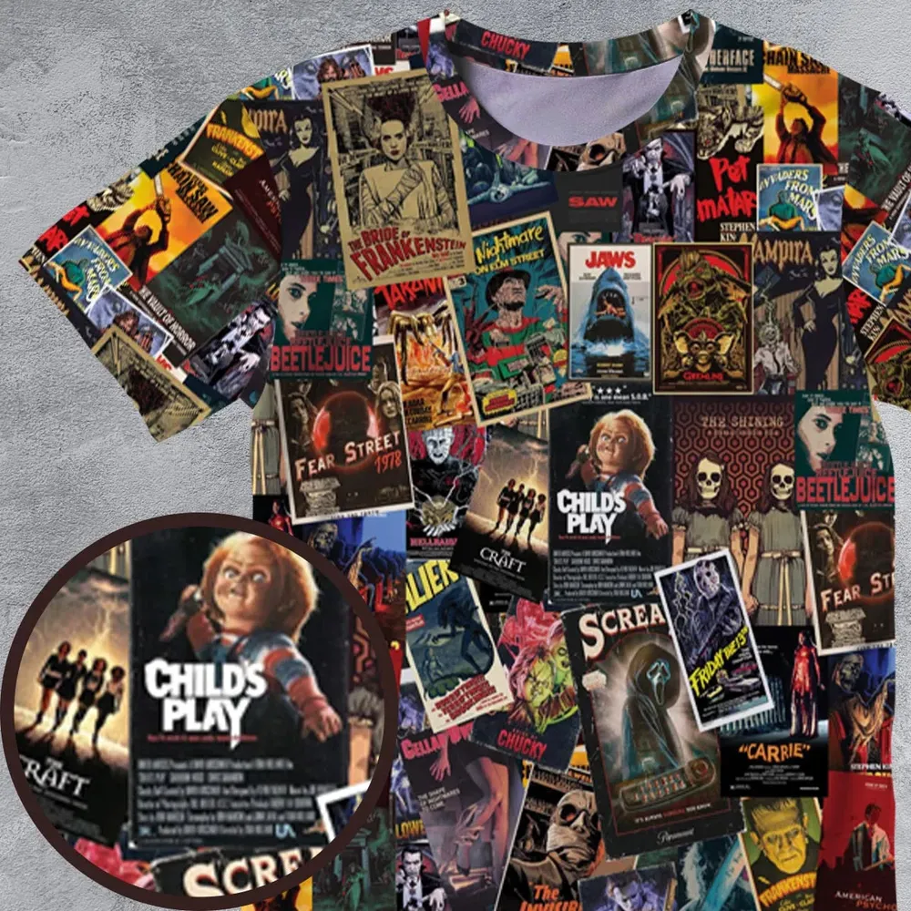3. Vintage Horror Pattern All-Over Print Unisex T-Shirt