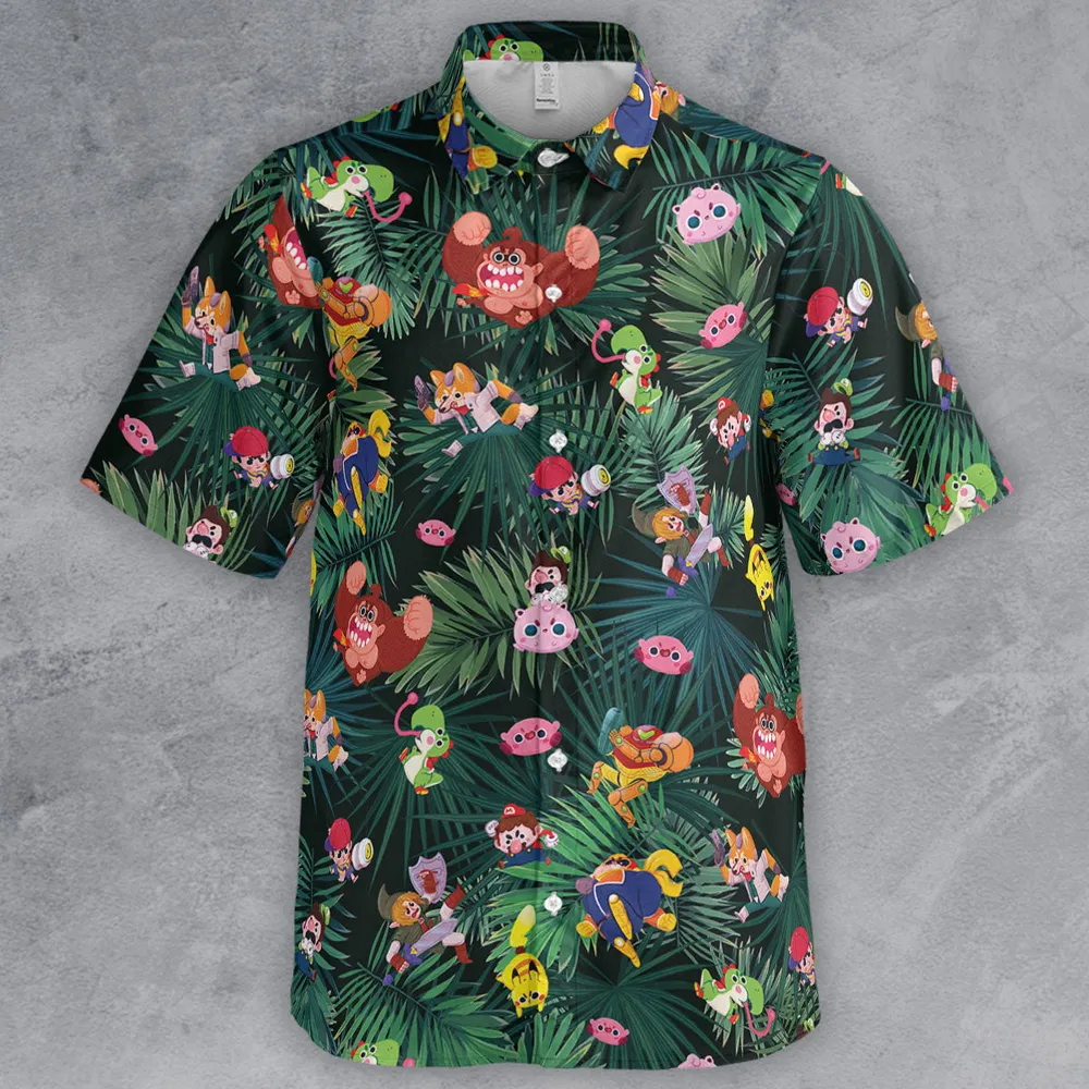 Video Game Characters Pattern Button Down Shirt - 3