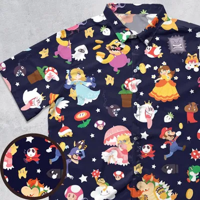 2. Mushroom Kingdom Super Mario Button Down Shirt