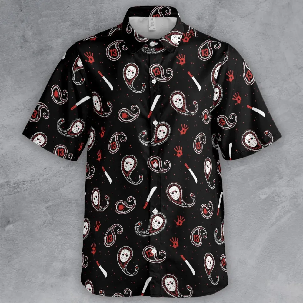 Jason Voorhees Friday The 13th Pattern Button Down Shirt