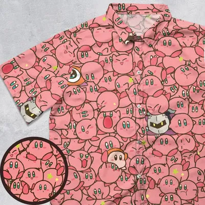 Report - Cute Kirby Waddle Doo Bandana Waddle Dee Meta Knight Kirby's Characters Button Down Shirt