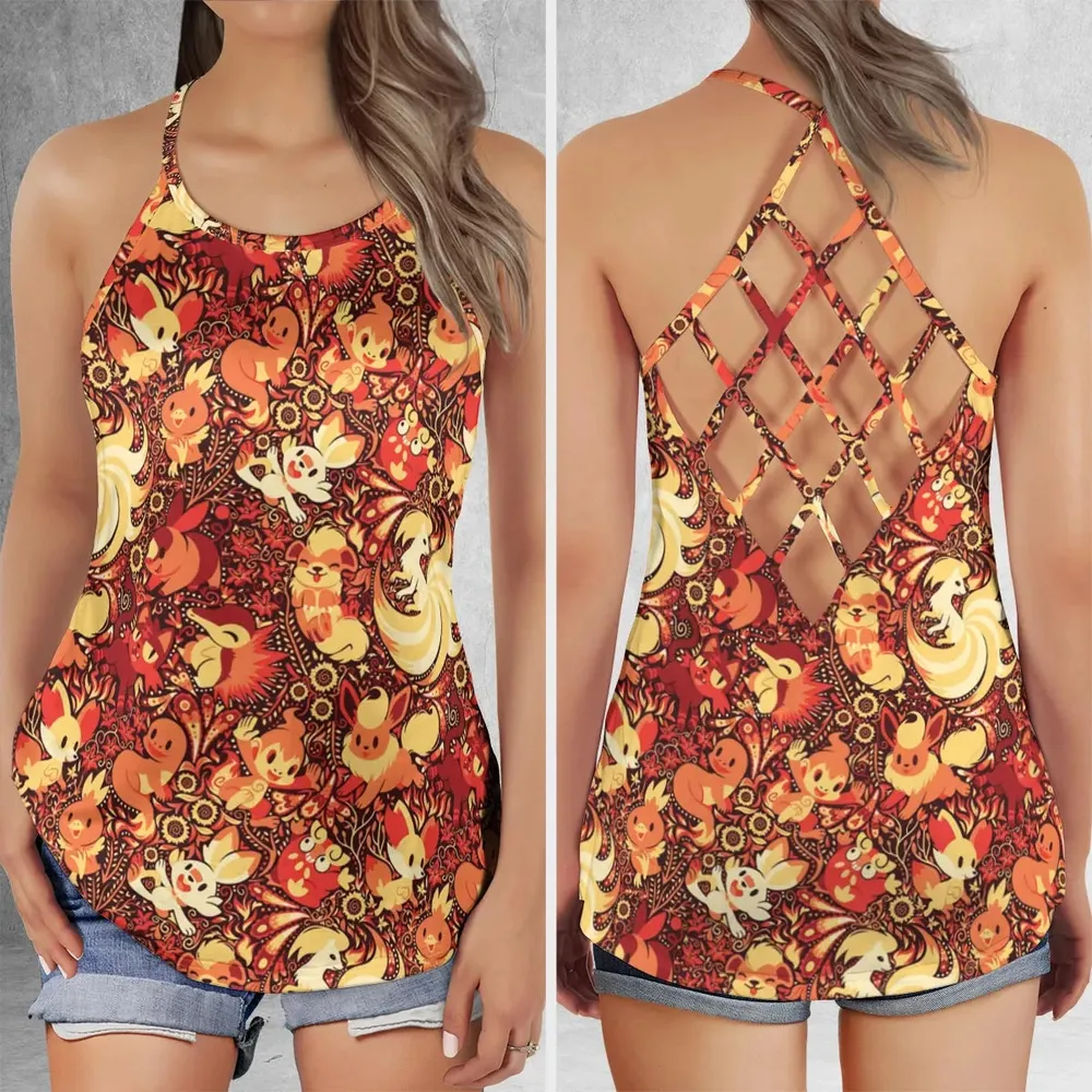 Pokemon Fire Pattern Criss Cross Tank Top