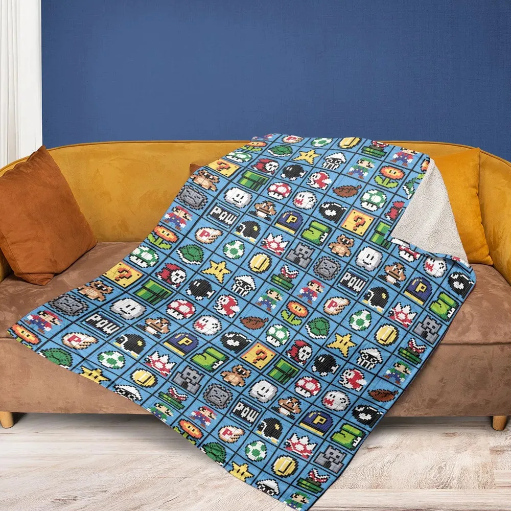Mario Pixel Super Mario Pattern Fleece Blanket