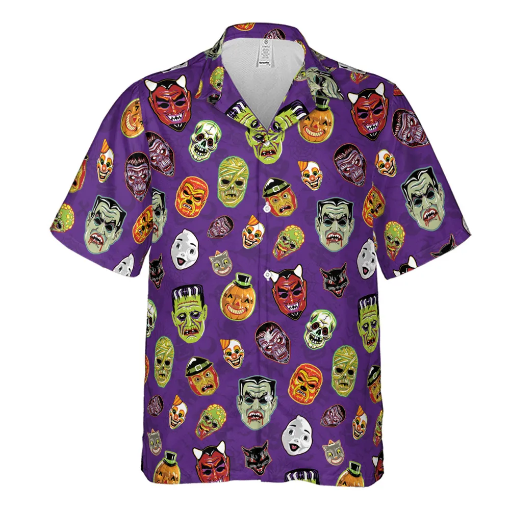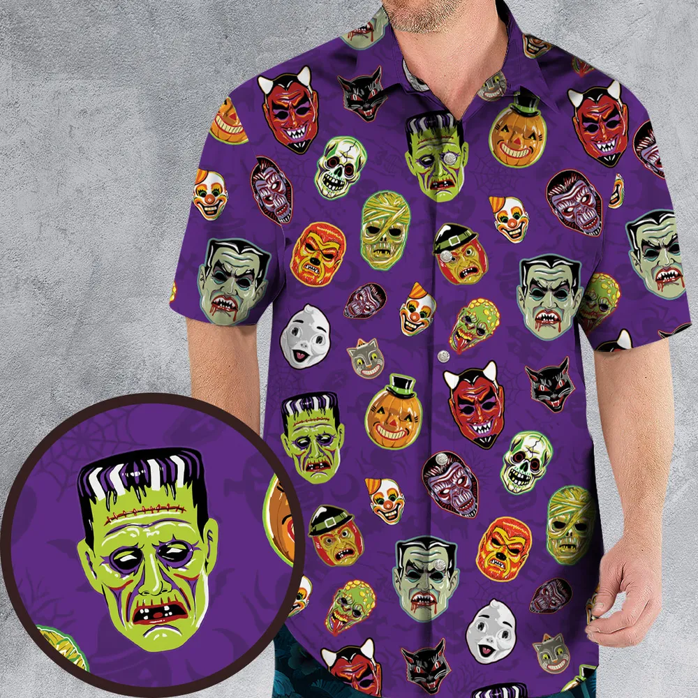 Retro Halloween Masks Hawaiian Shirt - 3