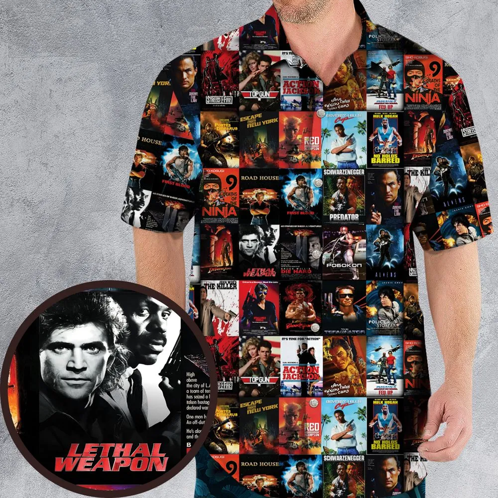 3. Action Icons 80s Action Movies Hawaiian Shirt