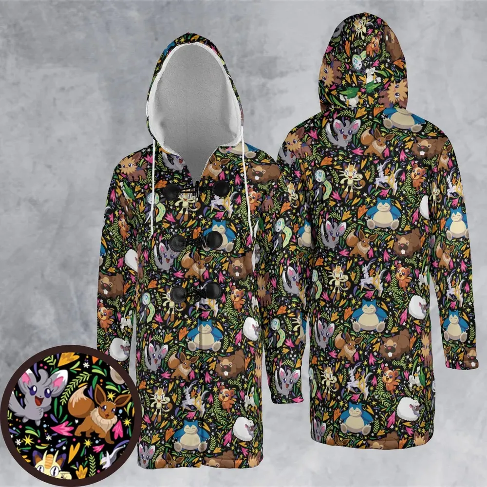 Floral Snorlax Bidoof Eevee Meloetta Pokemon Hooded Cloak Coat