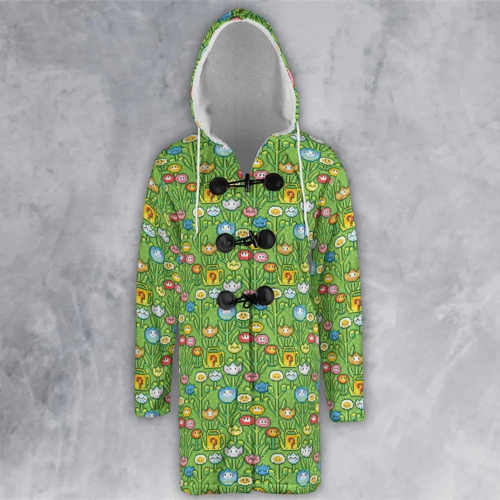 8bit Flower Garden Super Mario Pattern Hooded Cloak Coat