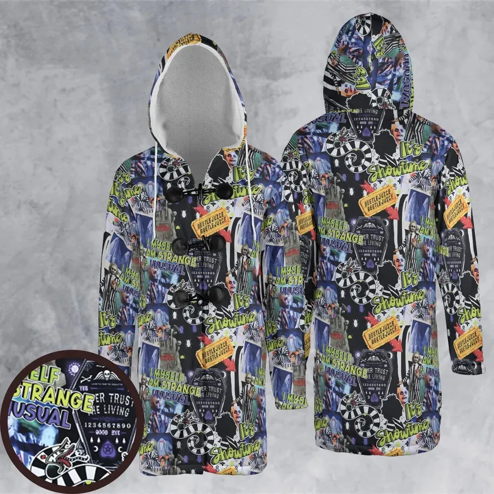 I Myself Am Strange Unusual Beetlejuice Hooded Cloak Coat