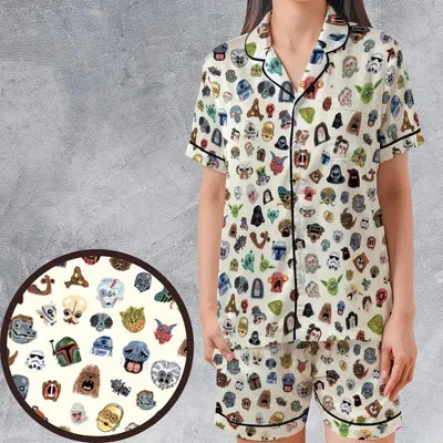 Star Wars Collage Pattern Satin Short-Sleeve Pajamas Set