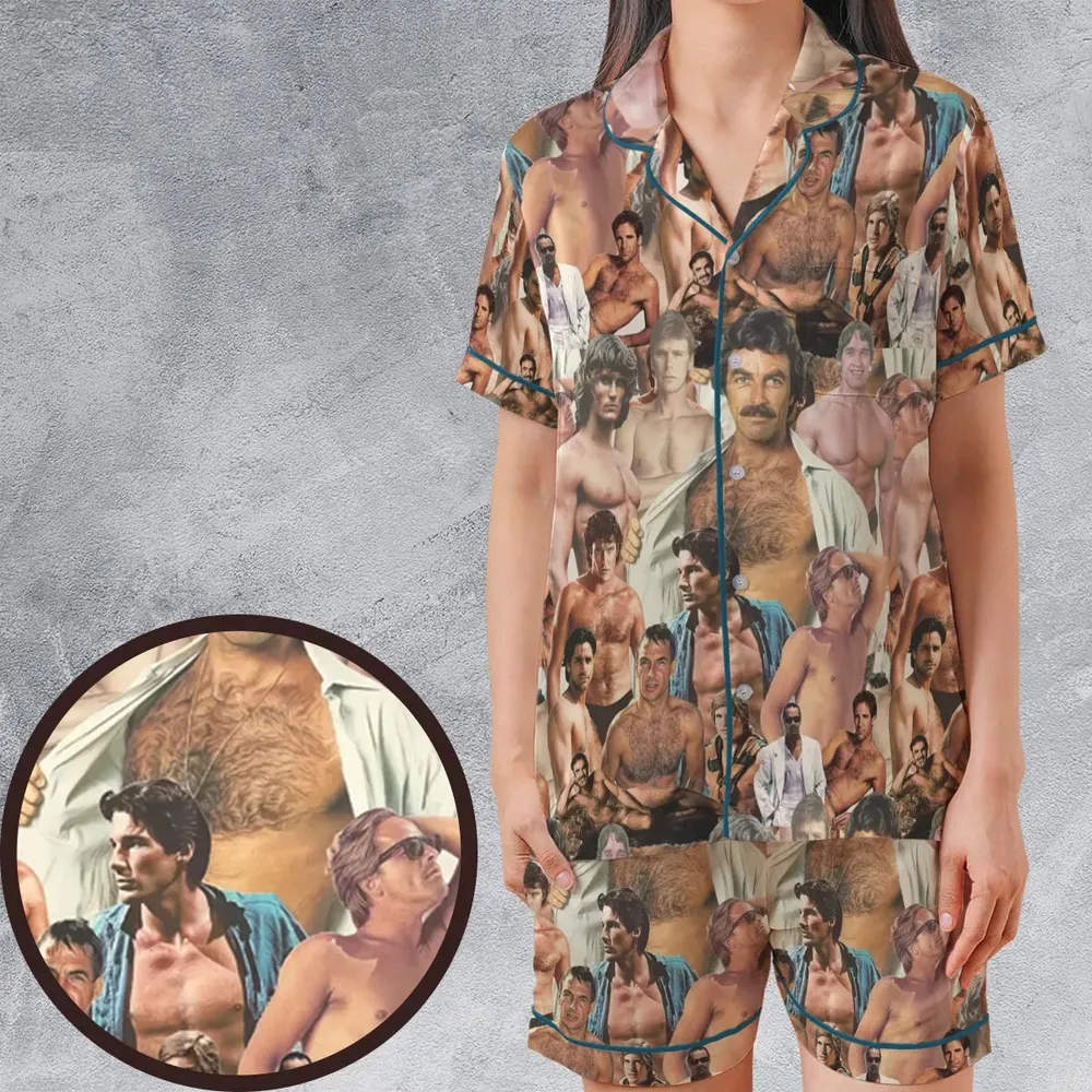 Vintage Hunks of The 80s Satin Short-Sleeve Pajamas Set