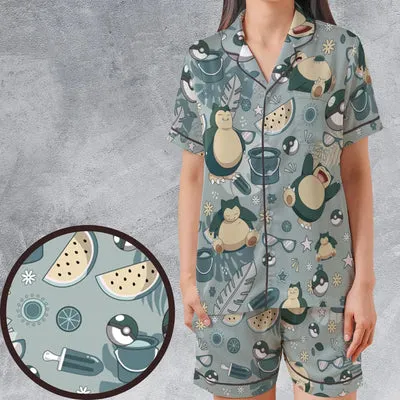 Report - Summer Relax Snorlax Pokemon Satin Short-Sleeve Pajamas Set