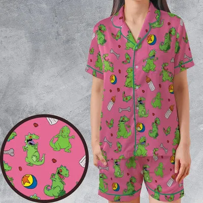 Rugrats Reptar Pattern Satin Short-Sleeve Pajamas Set