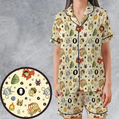 Report - Ghiblipalooza Ghibli Themed Satin Short-Sleeve Pajamas Set