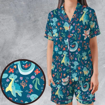 Water Pokemon Pattern Satin Short-Sleeve Pajamas Set