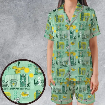 The Mandalorian Star Wars Aloha Satin Short-Sleeve Pajamas Set