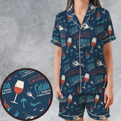 Report - Catalina Wine Mixer Pattern Satin Short-Sleeve Pajamas Set