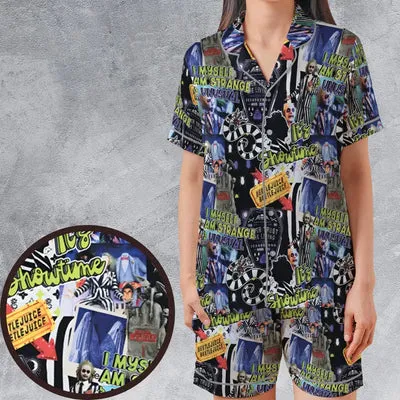 I Myself Am Strange Unusual Beetlejuice Satin Short-Sleeve Pajamas Set