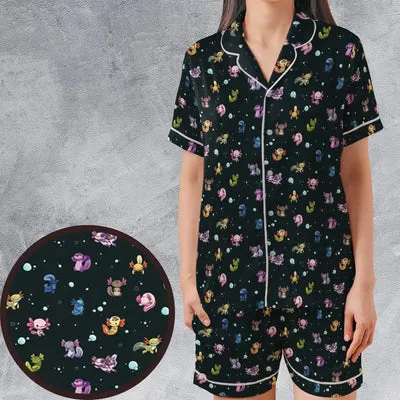 Axolotls Of The World Pattern Satin Short-Sleeve Pajamas Set