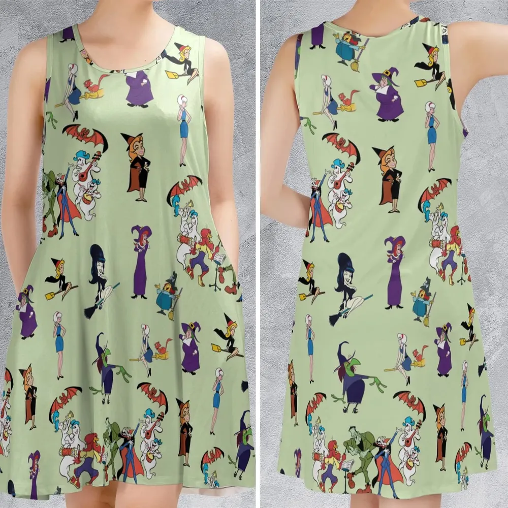 70s Witches Cartoon Characters Sleeveless Dress