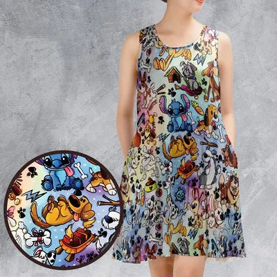 Cartoon Dogs Sleeveless Dress
