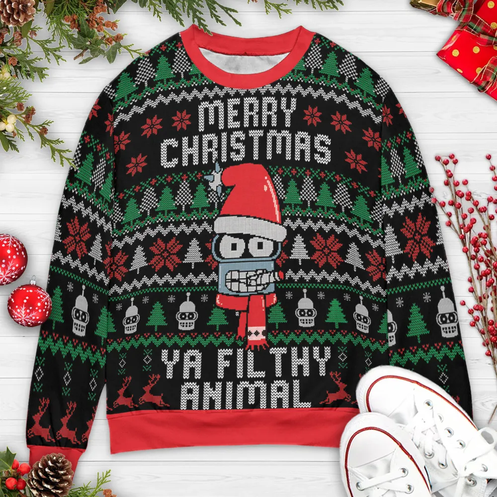 Ya Filthy Animal Futurama Ugly Christmas Sweatshirt