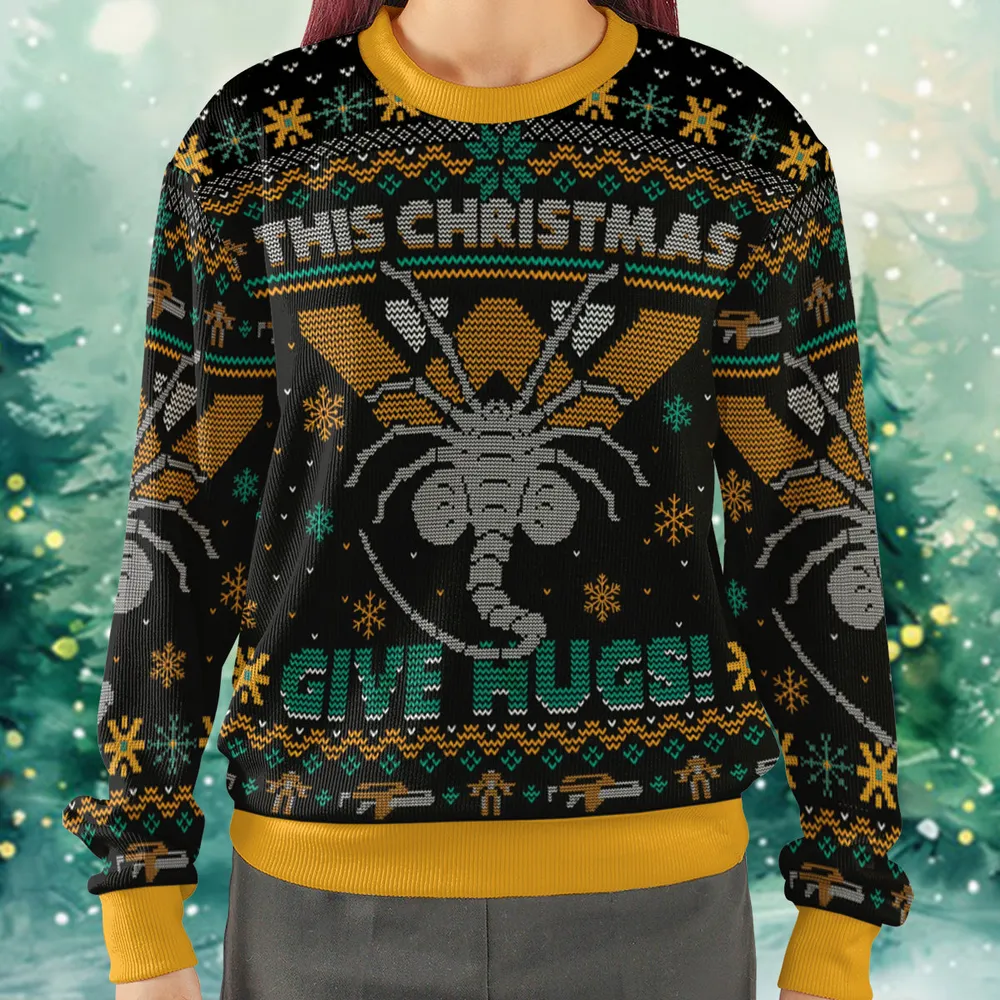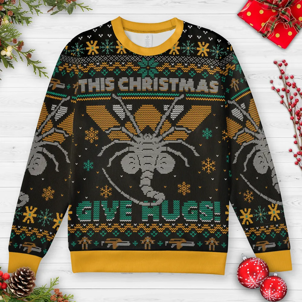 This Christmas Give Hugs Alien Ugly Christmas Sweatshirt