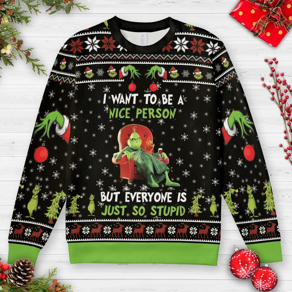 I Want To Be A Nice Person Ugly Christmas Sweatshirt - 1